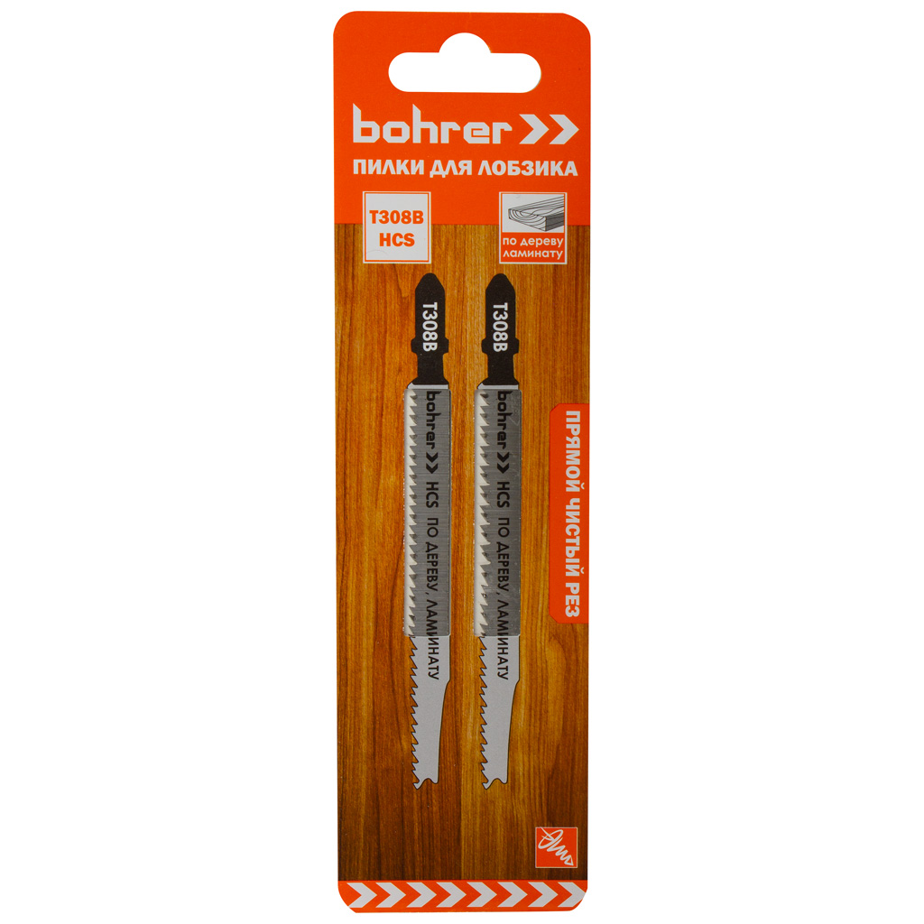 Пилки для электролобзика Bohrer 308B, по дереву, Т-хвостовик, набор 2шт/упак