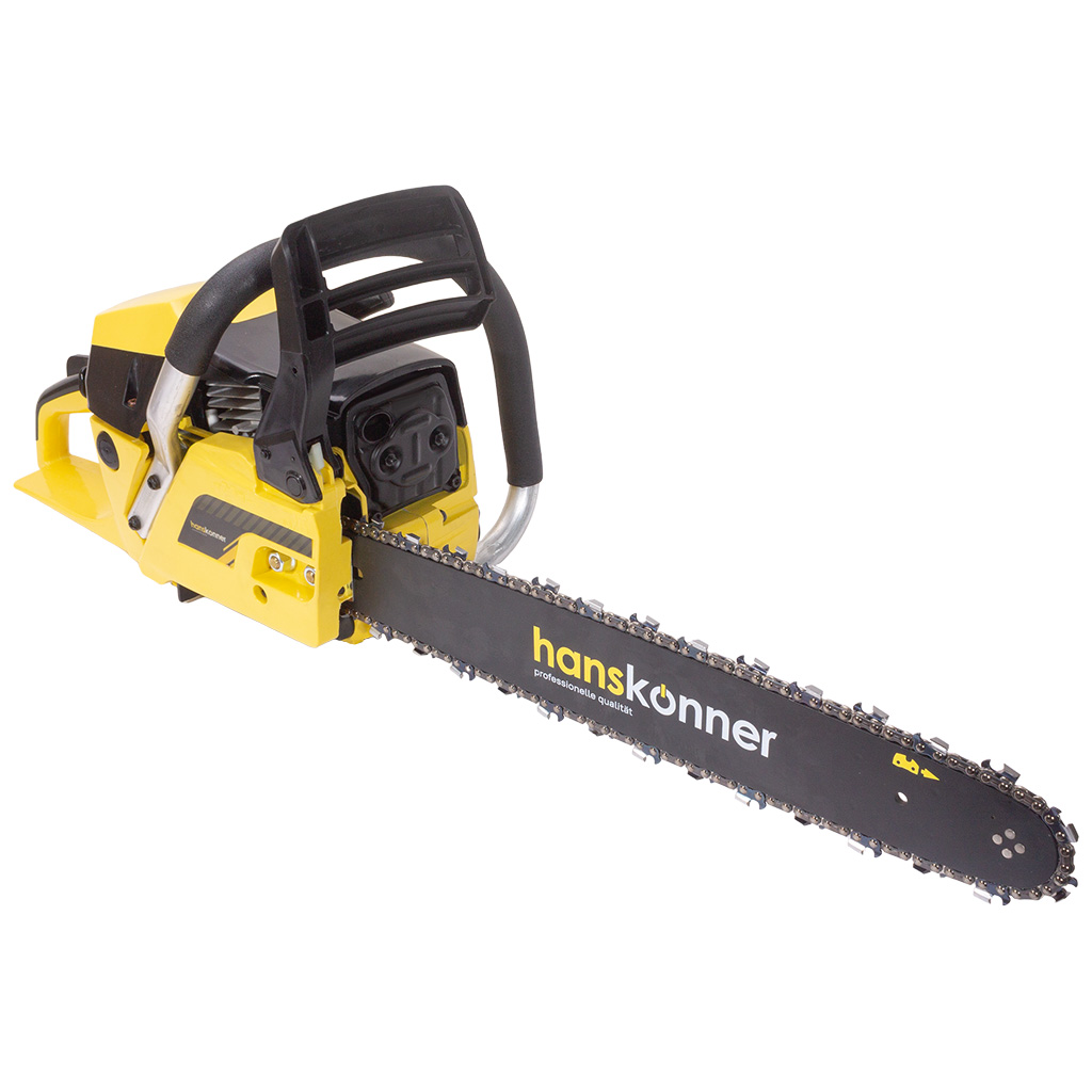 Бензопила цепная Hanskonner, предназначена для распиловки любых видов древесины и может использоваться для работ различной сложности: от ухода за садовыми деревьями и вплоть до сезонной заготовки дров.