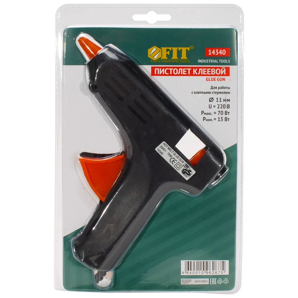 Пистолет термоклеящий электрический, FIT, 15Вт, d 11мм