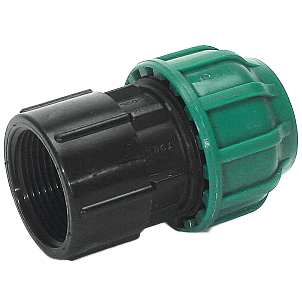 Муфта компрессионная предназначена для возможности легкого перехода со стального трубопровода на трубопровод из ПНД труб, так как имеет резьбу соответствующую размерам и стандартам стальных трубных резьб. Кроме этого муфта компрессионная с внутренней резьбой может участвовать в строительстве различных комбинаций отводов и разветвлений с применением других компрессионных ПНД фитингов.