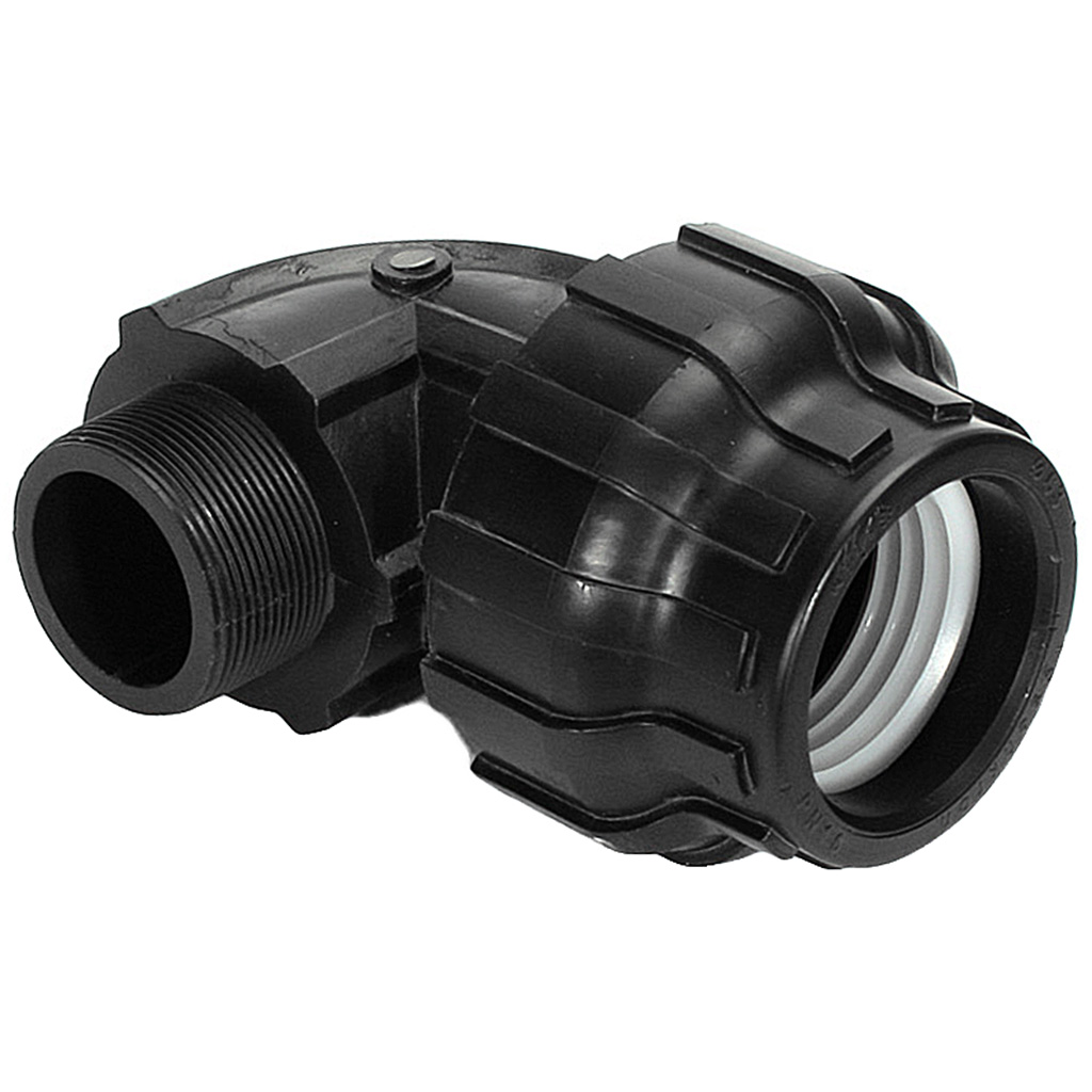 Компрессионный отвод - обжимной фитинг системы холодного водоснабжения, предназначенный для плавного изменения направления трубопровода под углом 90°. Несмотря на то, что материал трубы ПНД (полиэтилен) довольно гибкий, в нагруженных инженерных сетях нельзя допускать резких углов.