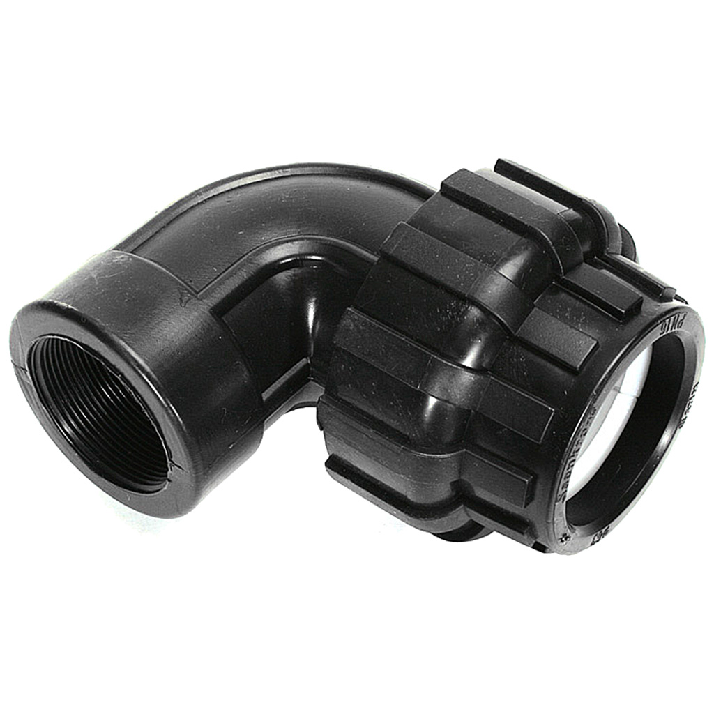 Компрессионный отвод - обжимной фитинг системы холодного водоснабжения, предназначенный для плавного изменения направления трубопровода под углом 90°. Несмотря на то, что материал трубы ПНД (полиэтилен) довольно гибкий, в нагруженных инженерных сетях нельзя допускать резких углов.