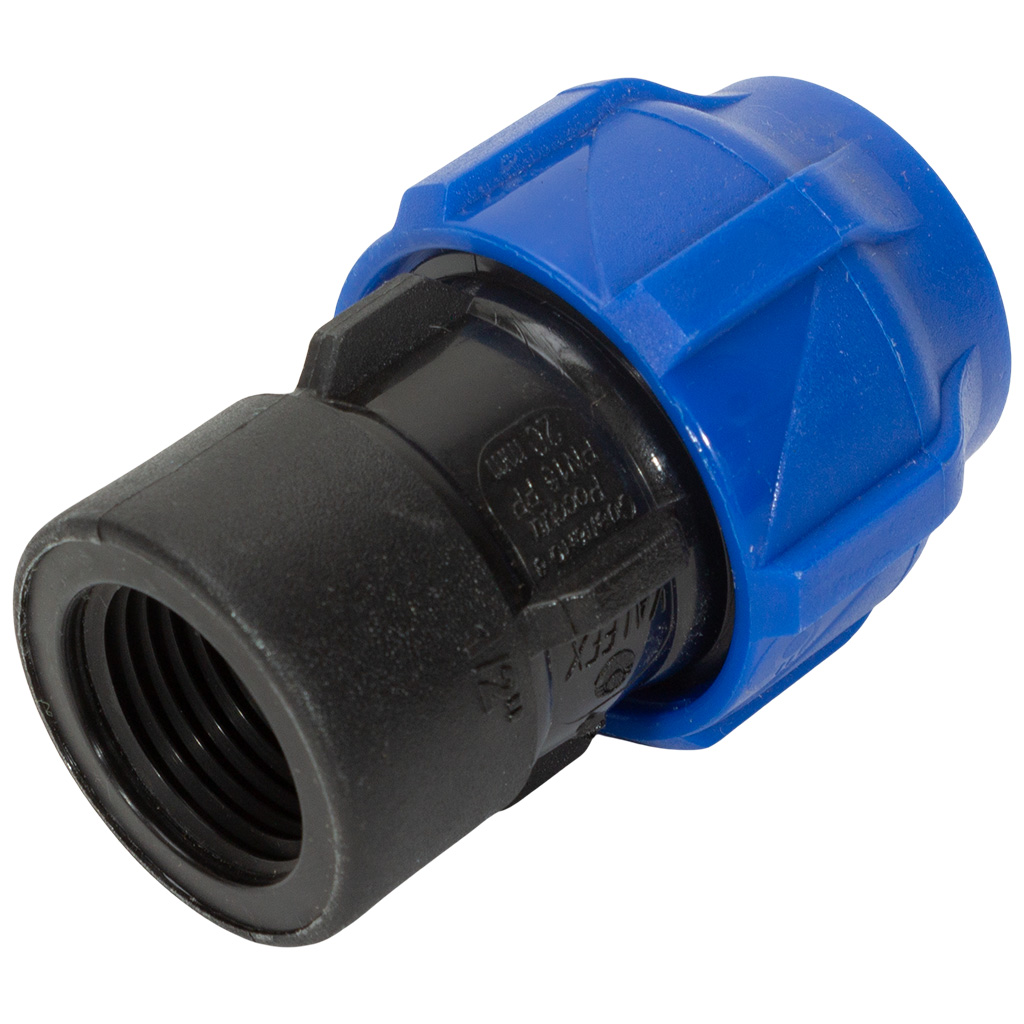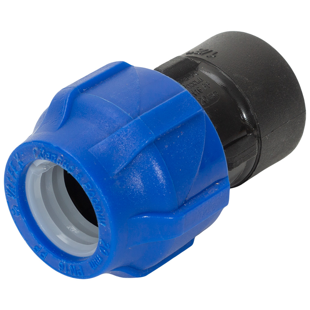 Муфта компрессионная предназначена для возможности легкого перехода со стального трубопровода на трубопровод из ПНД труб, так как имеет резьбу соответствующую размерам и стандартам стальных трубных резьб. Кроме этого муфта компрессионная с внутренней резьбой может участвовать в строительстве различных комбинаций отводов и разветвлений с применением других компрессионных ПНД фитингов.