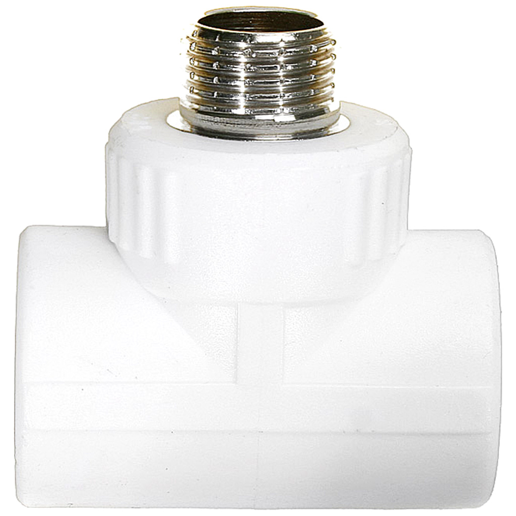 Тройник полипропиленовый комбинированный, предназначен для изменения направления трубопровода в системах питьевого или технического водоснабжения. Благодаря этому изделия можно соединить полипропиленовый трубопровод со стальной запорной арматурой или стальным трубопроводом.
