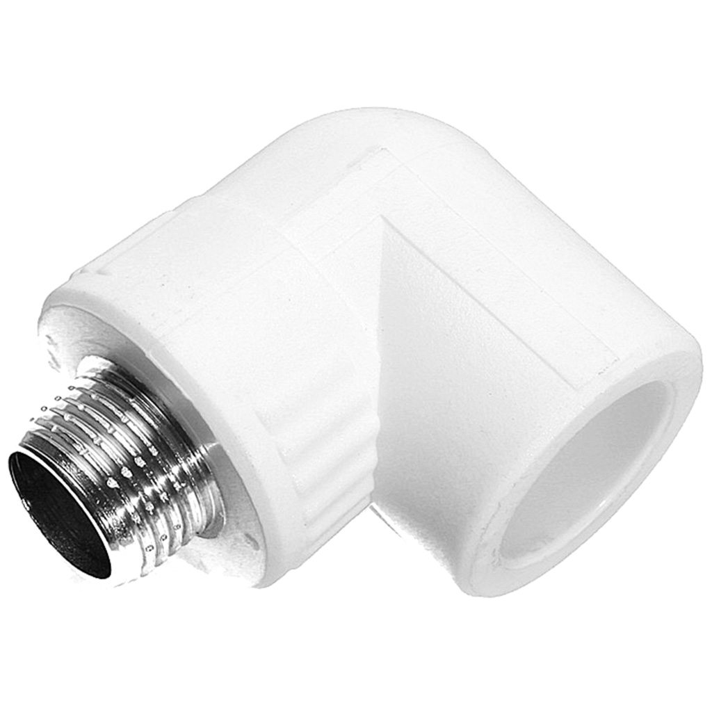 Угольник полипропиленовый Kalde, комбинированный, 25 x 1/2" ш, белый.