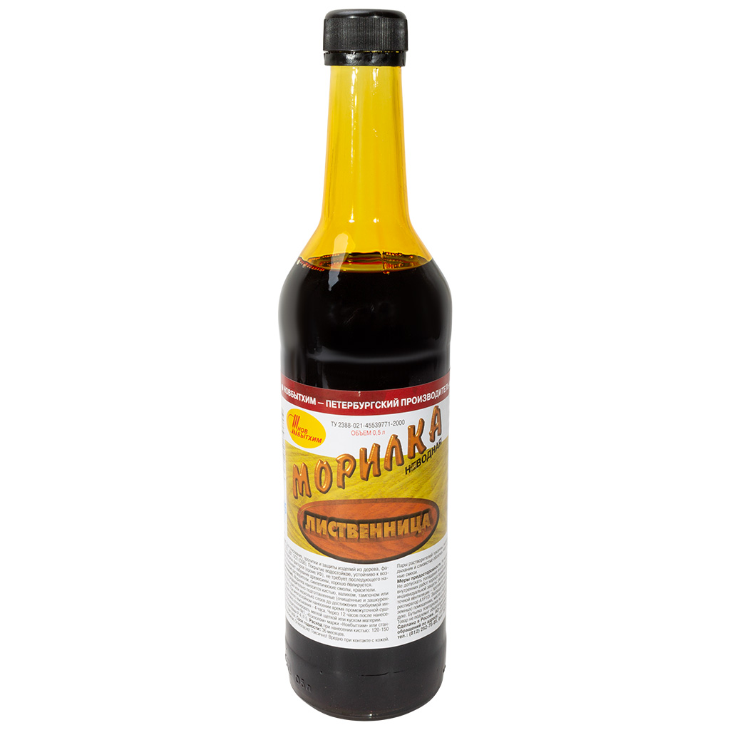 Изготовлена на основе органических растворителей и не смывается водой. Морилка наносится кистью, валиком, тампоном или распылителем на предварительно подготовленные (очищенные и зашкуренные) поверхности в один или несколько слоёв до достижения требуемой интенсивности цвета. При многослойном нанесении время промежуточной сушки — 2 часа. Через 12 часов после нанесения поверхность можно отполировать мягкой щеткой или куском материи. Расход при нанесении кистью в один слой — 120–150 мл/м2.
