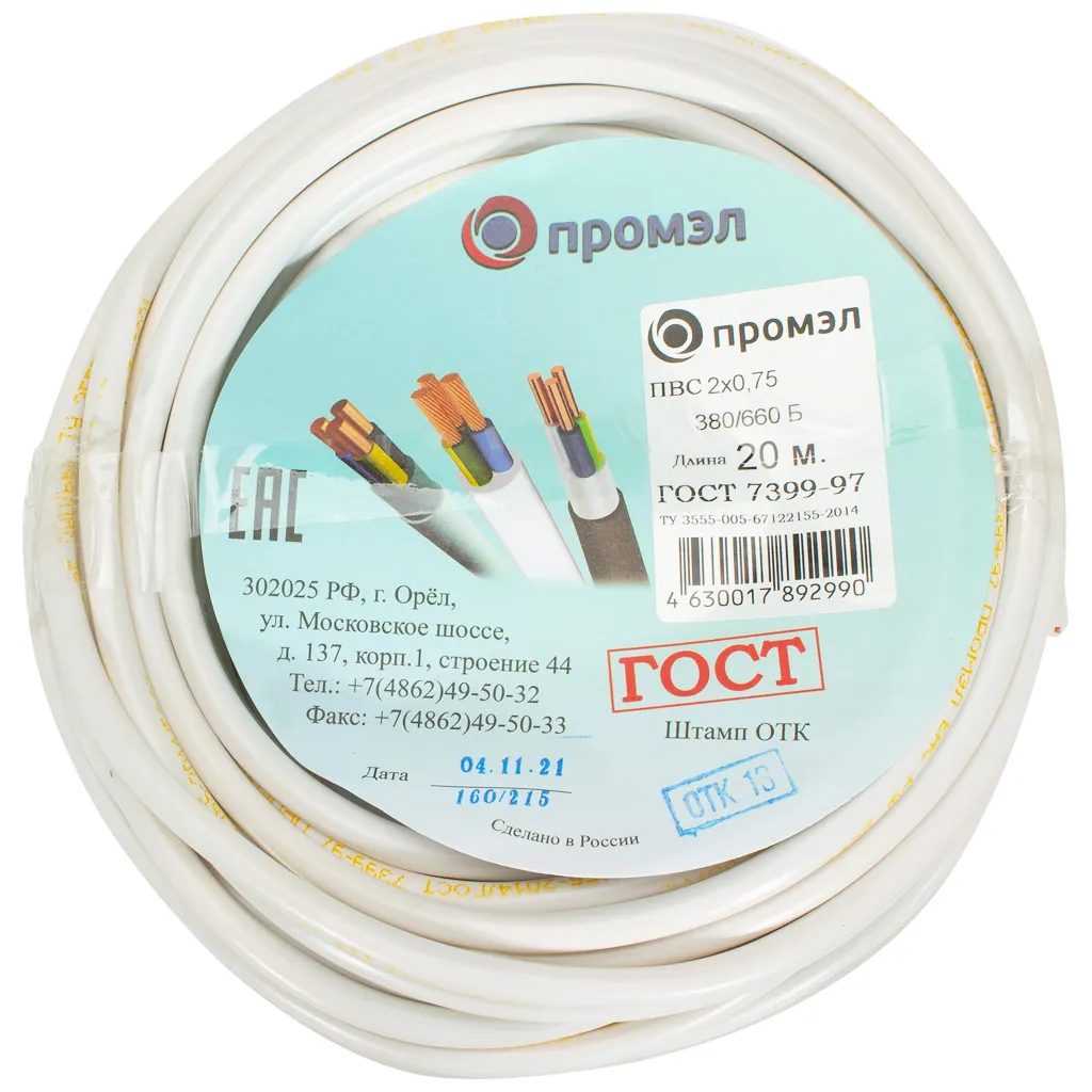 Провод ПВС 2х0.75мм, круглый, 20м
