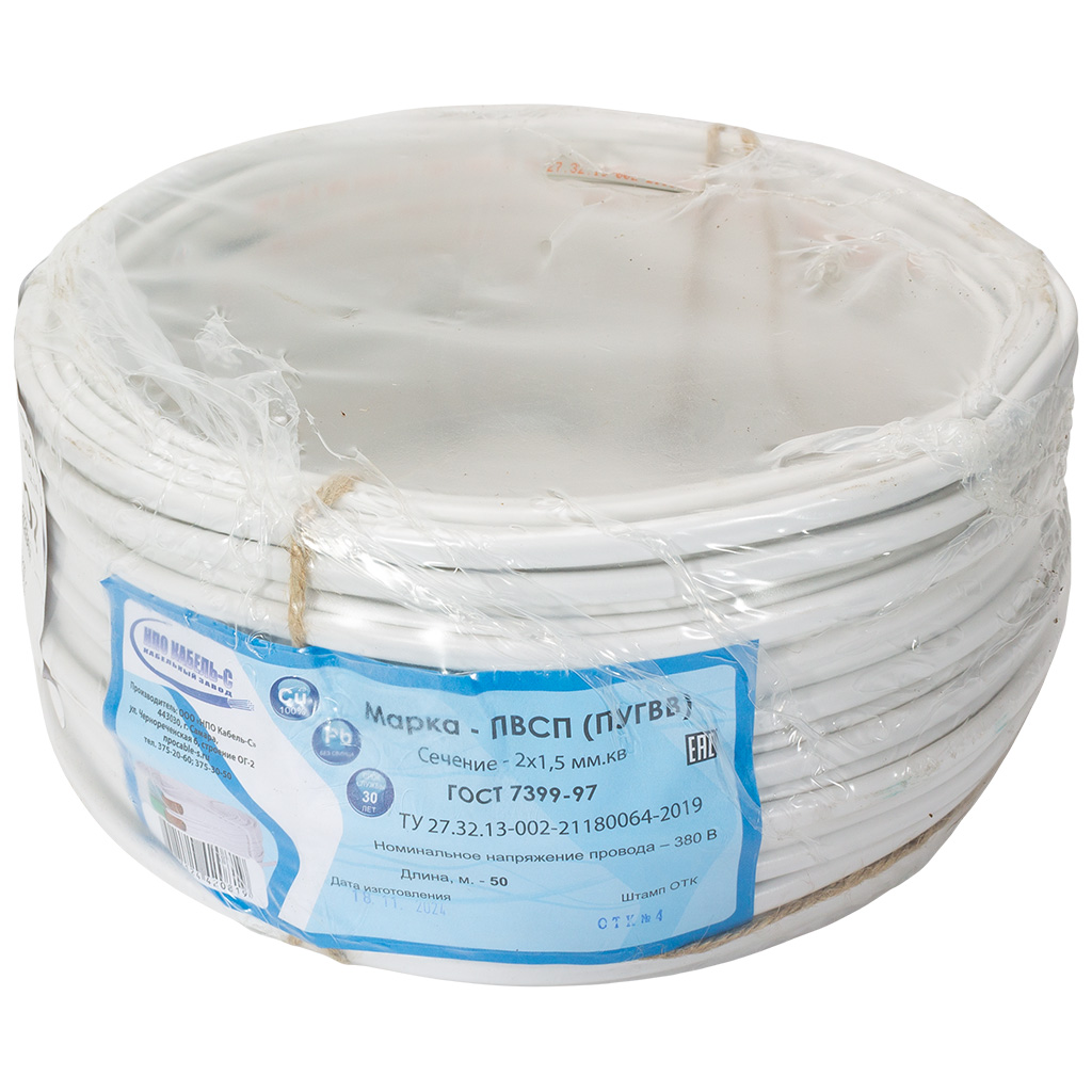 Провод ПГВВП 2х1.5мм, плоский, 50м