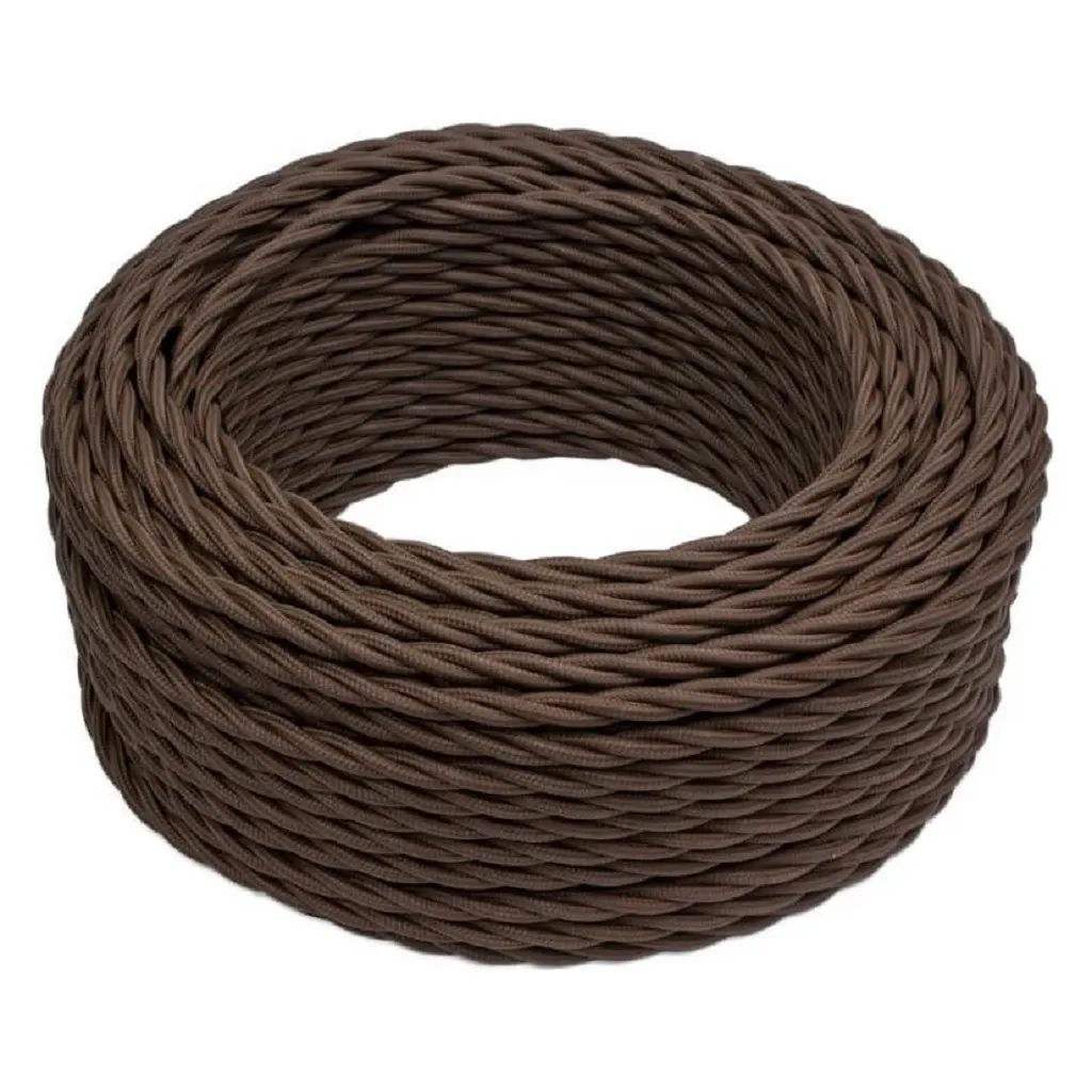 Провод витой Ретро Bironi – это витой, электрический кабель, созданный специально для дизайнерских решений с элементами открытой проводки. Силовой кабель выполнен как плетёный, «под старину», за счёт чего он идеально подходит для интерьеров в стиле Ретро, Лофт или Индастриал. Кабель покрыт специальной тканью, смотрится как текстильный провод, и гармонично подходит для оформления кастомных люстр, модных подвесных патронов с лампами или атмосферных бра.