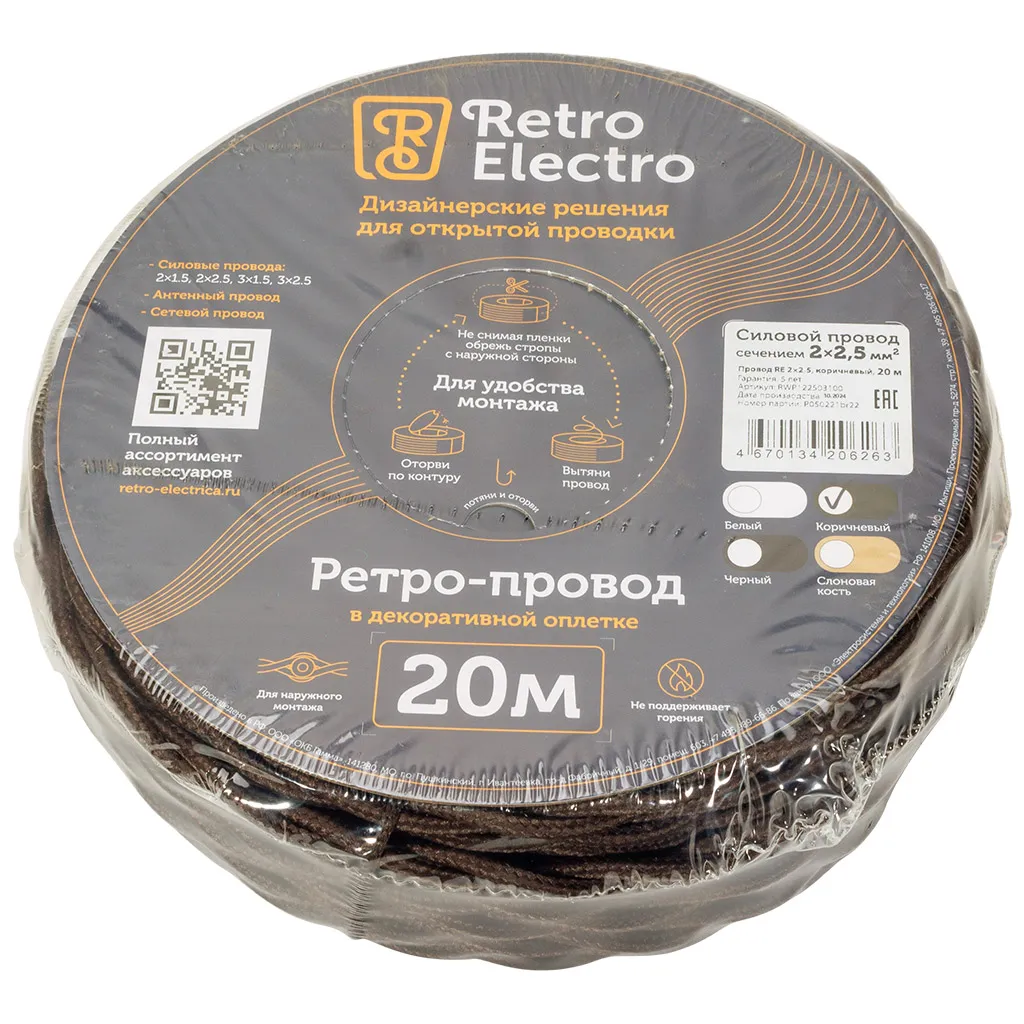 Силовой кабель Retro Electro – это витой, электрический кабель, созданный специально для дизайнерских решений с элементами открытой проводки. Силовой кабель выполнен как плетёный, «под старину», за счёт чего он идеально подходит для интерьеров в стиле Ретро, Лофт или Индастриал. Кабель покрыт специальной тканью, смотрится как визуально-интересный текстильный провод, и гармонично подходит для оформления кастомных люстр, модных подвесных патронов с лампами или атмосферных бра в стиле электрики Лофт.