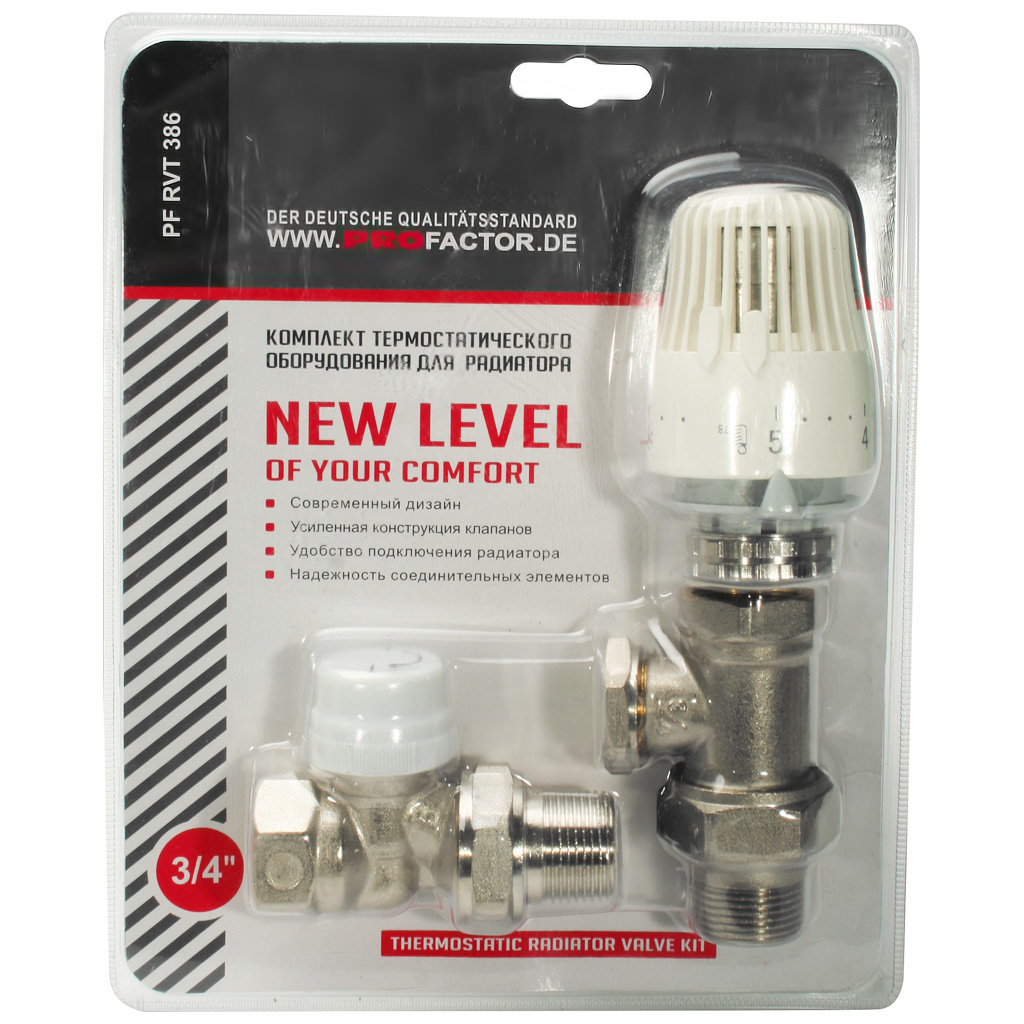 Комплект термостатический для подключения радиатора Pro Factor, прямой, 3/4"