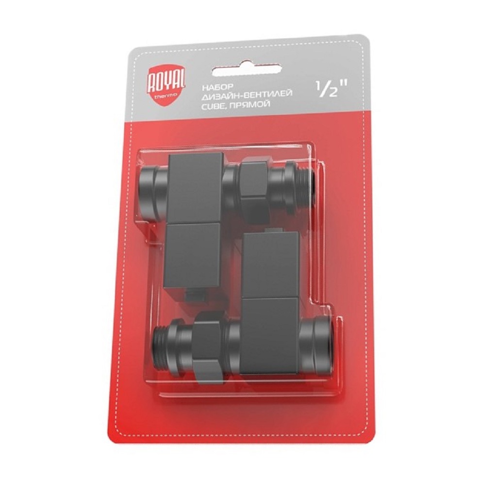 Набор дизайн-вентелей Royal Thermo Cube, черный, прямой, 1/2