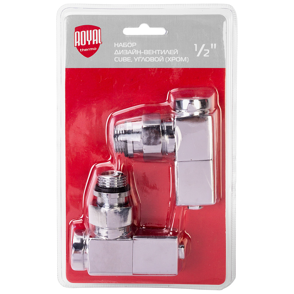 Набор дизайн-вентелей Royal Thermo Cube, хром, угловой, 1/2