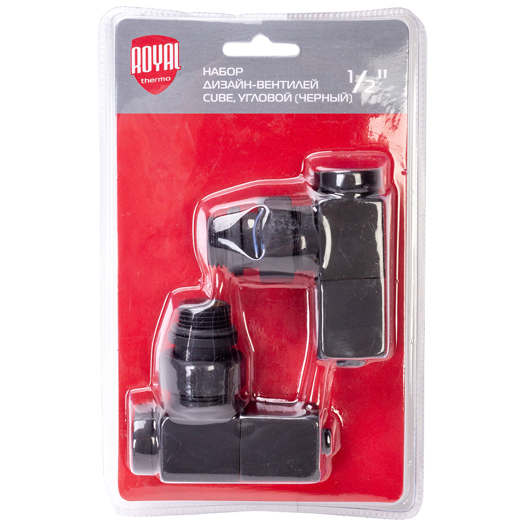 Набор дизайн-вентелей Royal Thermo Cube, черный, угловой, 1/2