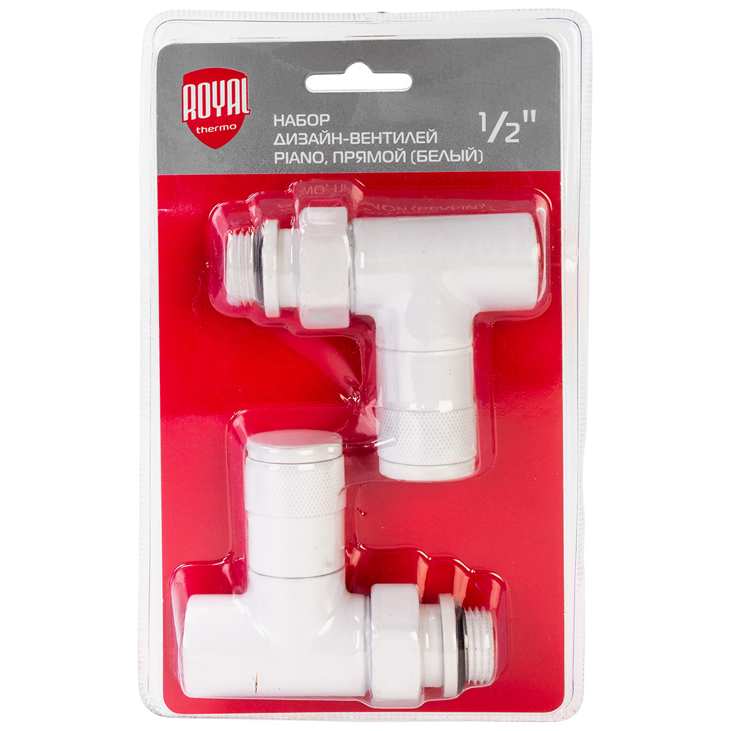 Набор дизайн-вентелей Royal Thermo Piano, белый, прямой, 1/2