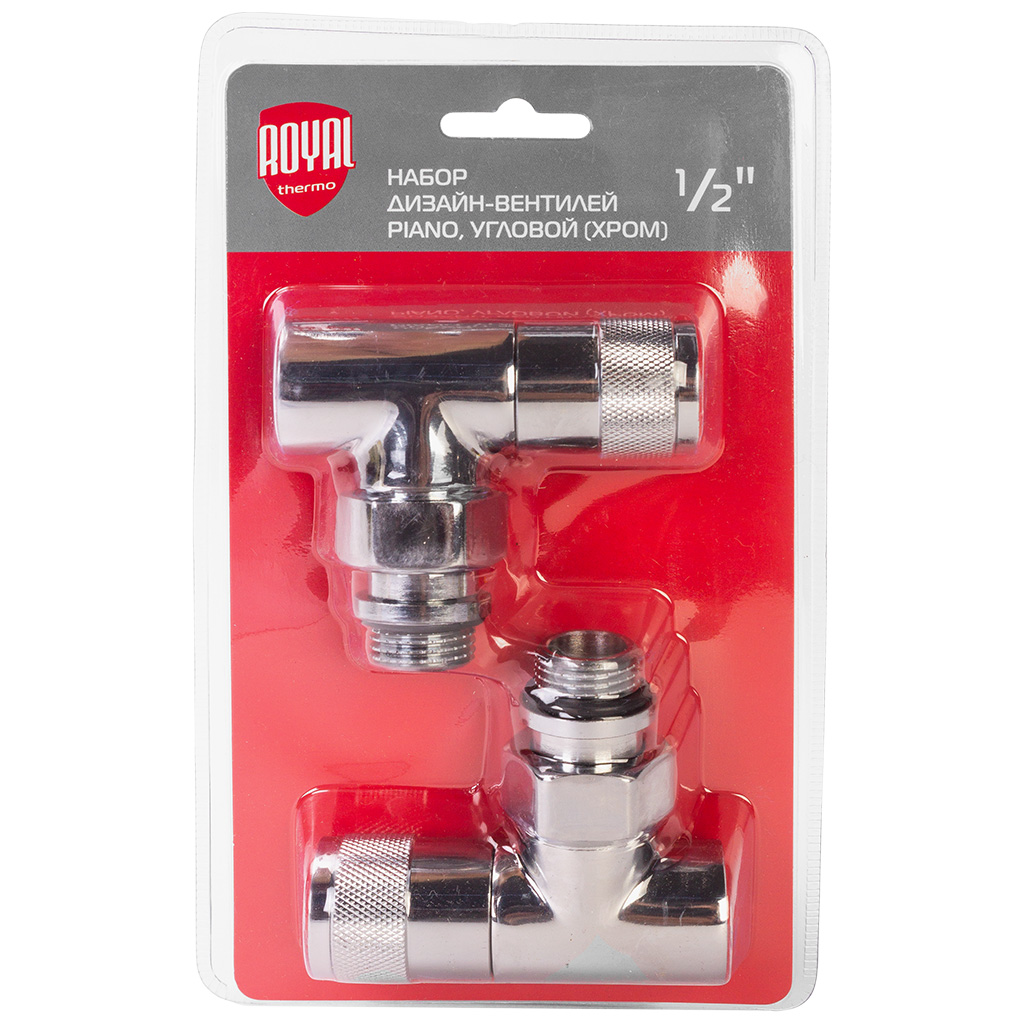 Набор дизайн-вентелей Royal Thermo Piano, хром, угловой, 1/2