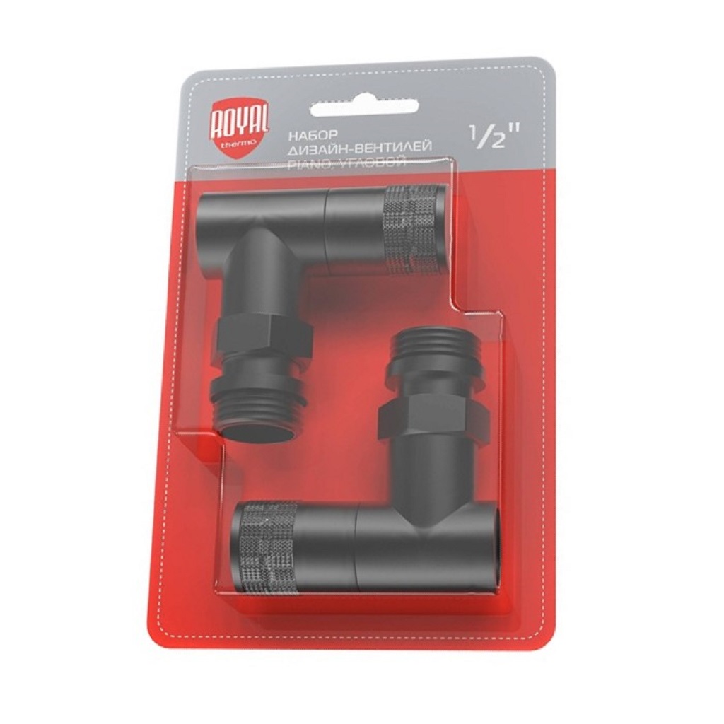 Набор дизайн-вентелей Royal Thermo Piano, черный, угловой, 1/2