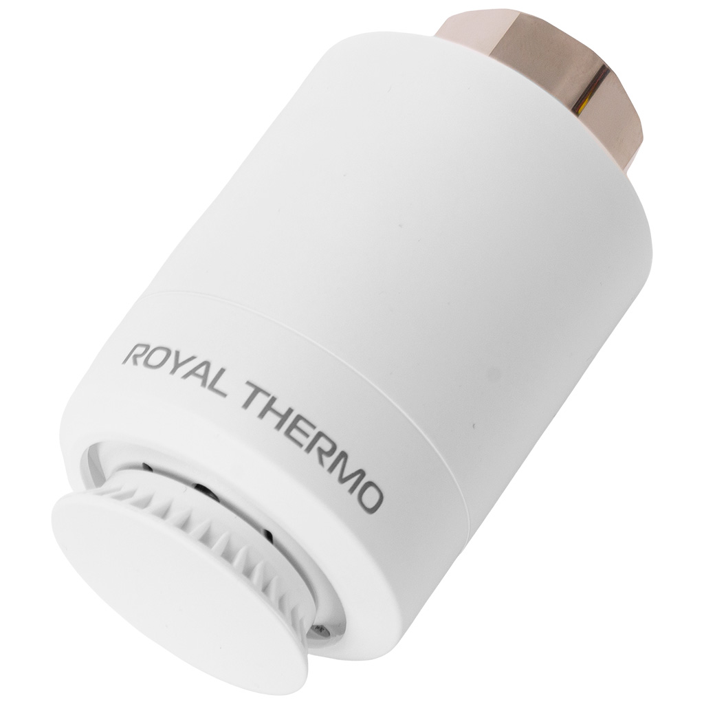 Термостат радиаторный электронный ROYAL THERMO Smart Heat с LED дисплеем и регулятором температуры выполнен из высококачественного пластика и металла, применяются для автоматического поддержания заданной температуры в жилых, производственных и хозяйственных помещениях путем управления термостатическими вентилями, регулирующими подачу теплоносителя в приборы отопления.