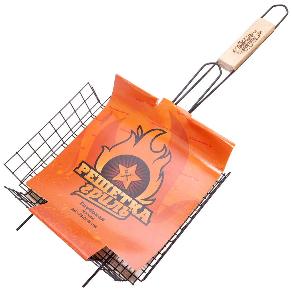 Универсальная решетка барбекю - это специальная конструкция из прочного металла, благодаря бортикам высотой 6 см в ней можно жарить сосиски, котлетки и при этом не опасаться, что они могут упасть в огонь. Удобна при транспортировке благодаря небольшому весу. Изготовлена из стали, что обеспечивает продолжительный срок эксплуатации. Деревянная ручка отвечает за безопасность использования, защищая от ожогов.
