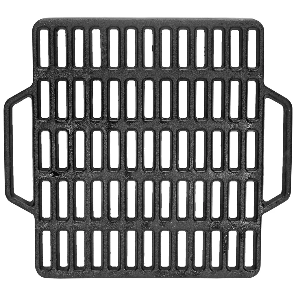 Решетка для гриля, изготовлена из высококачественного чугуна. Такую решётку можно использовать для приготовления пищи на открытом огне без всякого вреда для вашего здоровья. Благодаря высокой теплопроводности и теплоемкости чугунная решетка для гриля придает приготавливаемым продуктам совершенно иной вкус и аромат. Обработайте чугунную решетку барбекю маслом, и продукты не пригорят к решетке, а на поверхности останутся красивые отпечатки от решетки гриль.