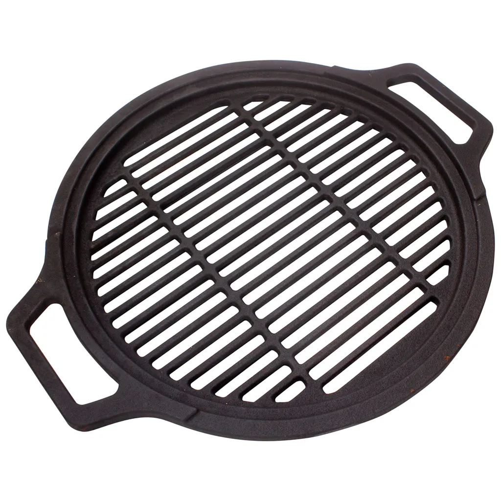 • Универсальность – решетка является достаточно простым и удобным приспособлением. Её можно использовать почти на любой модели тандыра, жаровне, костровнице, гриле, в духовке… и даже на охоте или рыбалке. На костровой подставке с чугунной решеткой можно не только пожарить мясо и рыбу, но и удобно вскипятить чайник и приготовить любое блюдо в котелке.