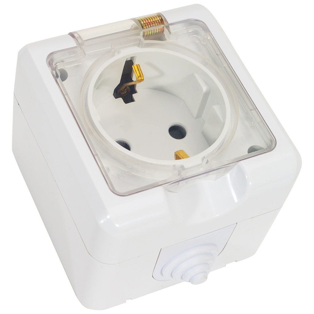Розетка открытой проводки Dita, 1-местная, 16А, с заземлением, с крышкой, белая