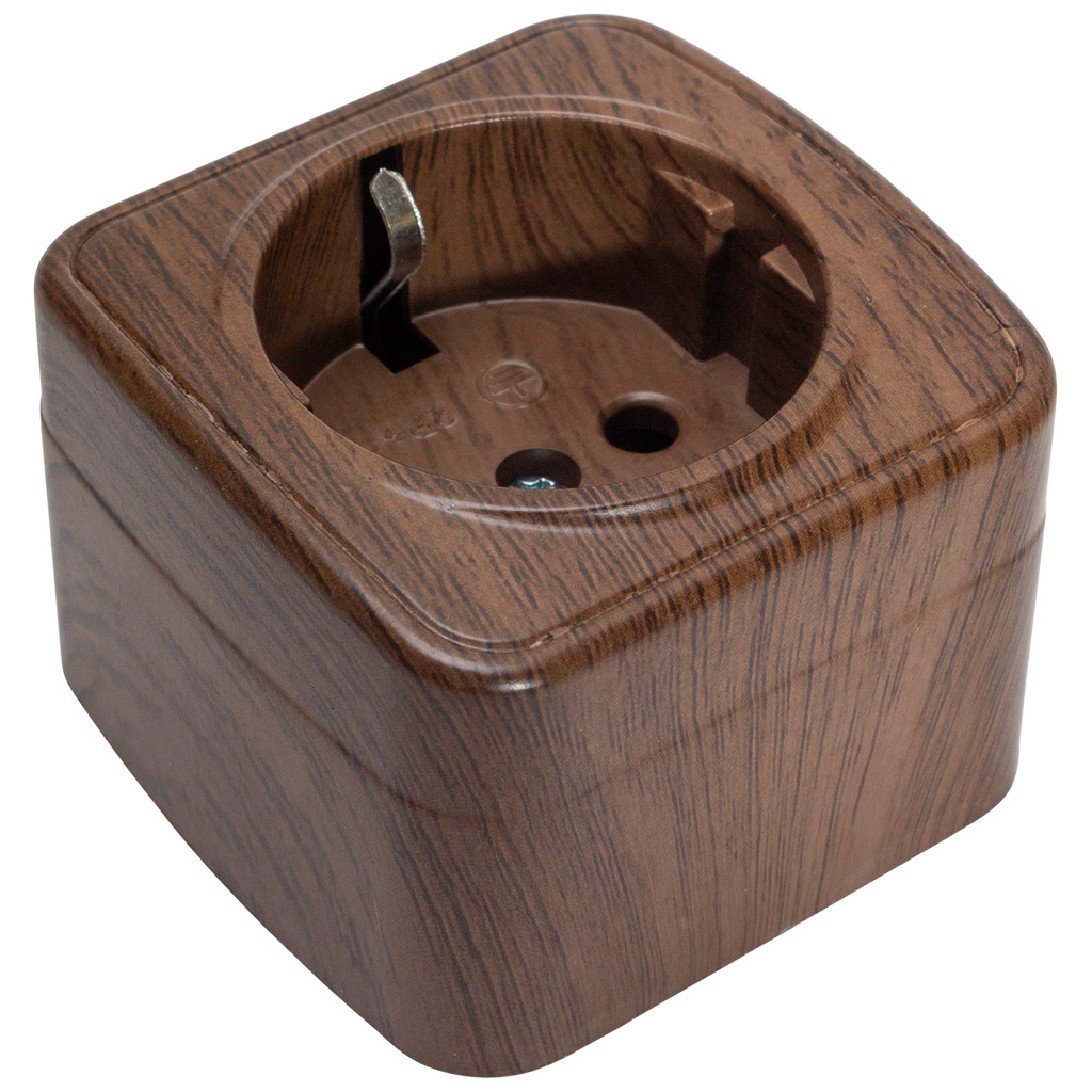 Розетка открытой проводки EKF Минск, 1-местная, с заземлением, темное дерево