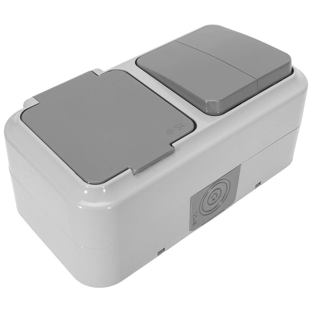 Блок открытой проводки Bylectrica Пралеска Аква, розетка+2 кл. выключатель, IP54, серый