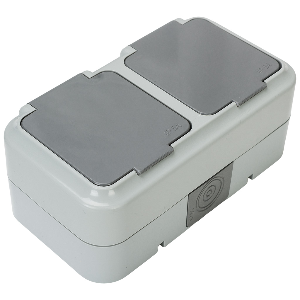 Блок открытой проводки Bylectrica Пралеска Аква, розетка 2-местная, с заземлением, IP54, серый