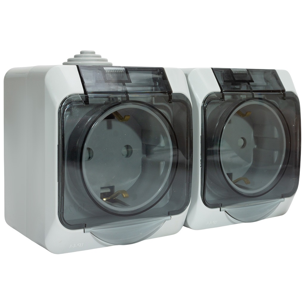 Розетка открытой проводки Systeme Electric Этюд, 2-местная, 16А, с заземлением, серая.