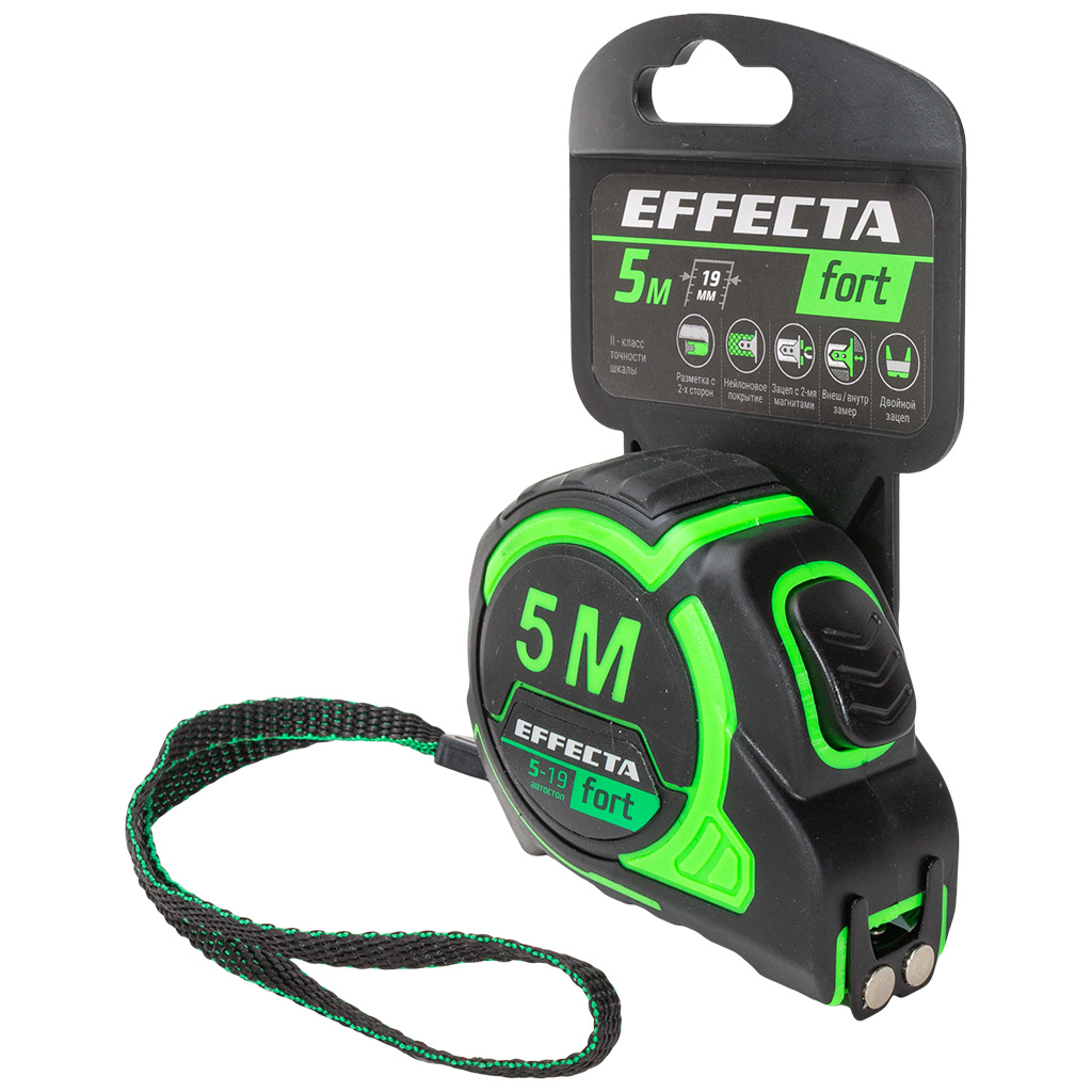 Рулетка Effecta Fort автостоп, магнит, шкаланейлон, 5м х19мм