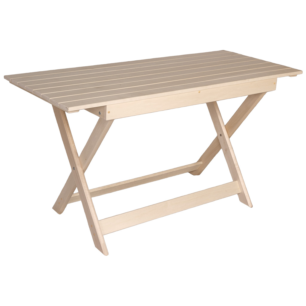 Стол с простой и надежной конструкцией отлично подойдет для использования в бане, сауне и саду. Легко складывается и раскладывается, что позволяет компактно хранить стол, когда он не используется.
