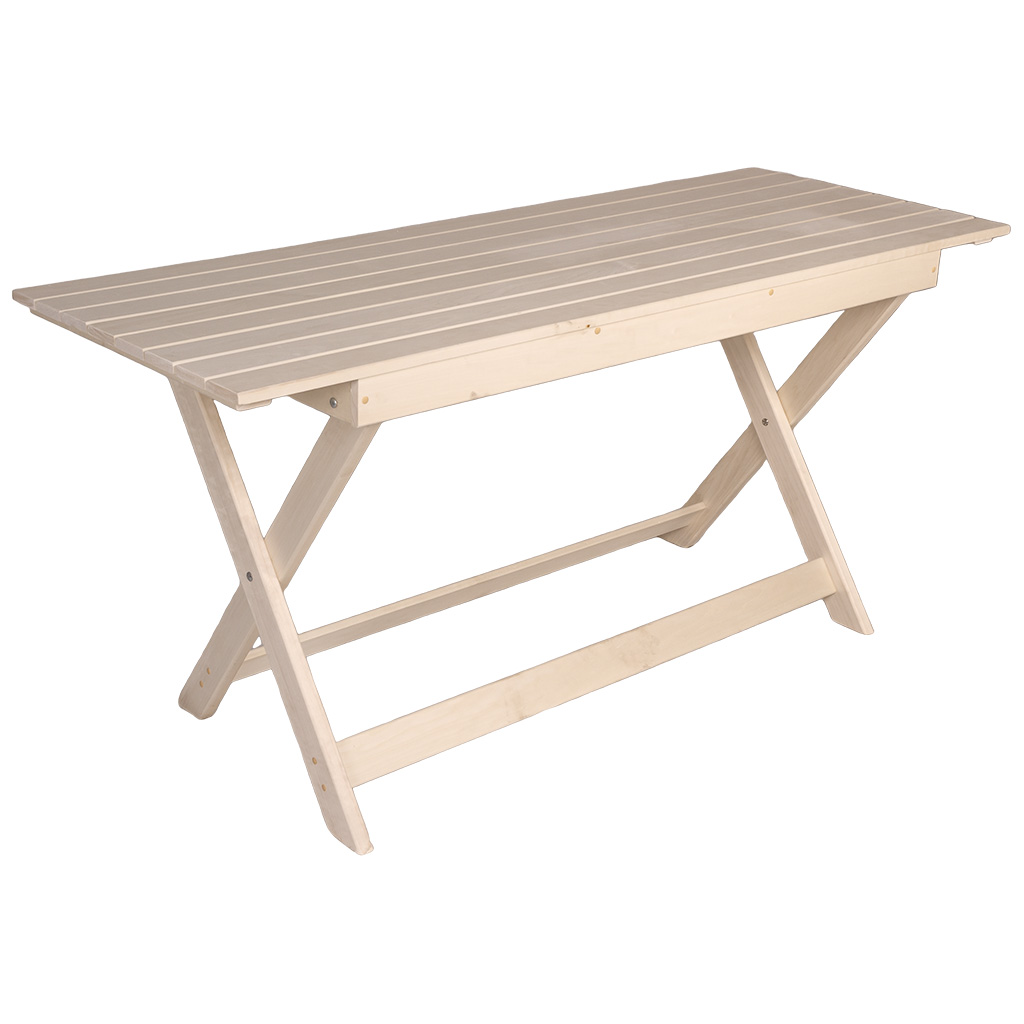 Стол с простой и надежной конструкцией отлично подойдет для использования в бане, сауне и саду. Легко складывается и раскладывается, что позволяет компактно хранить стол, когда он не используется.