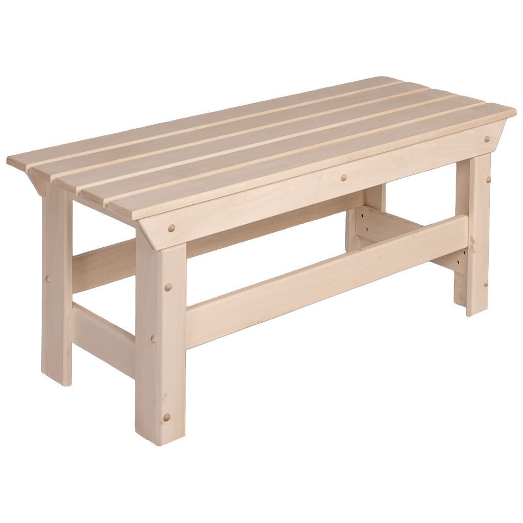 Скамья для банных помещений и саун, изготовлена из древесины липы, отличается устойчивостью к воздействию влаги и резким перепадам температуры. Материал обладает естественными свойствами защиты от грибка и плесени, не склонен к деформации и растрескиванию, не темнеет в течение долгого времени и имеет превосходные эстетические характеристики: ровная светлая текстура без сучков, приятная бархатистая поверхность. Изделие превосходно впишется в традиционный интерьер русской бани и будет гармонично сочетается с другими предметами деревянной мебели и утвари.