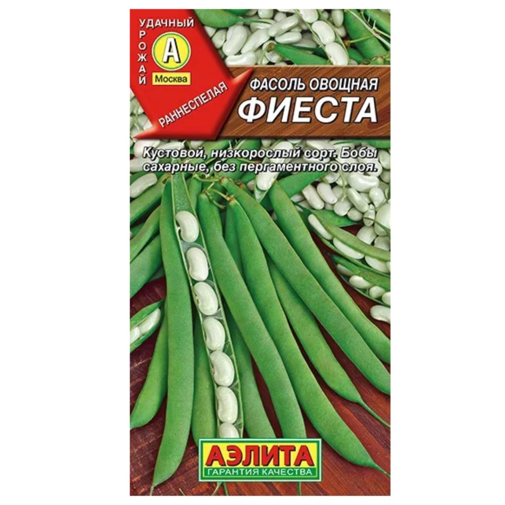 Фасоль овощная Фиеста, раннеспелый сорт, от всходов до первого сбора лопаток 45-55 дней. Растения кустовые, высотой 40-50 см. Бобы длиной 13-17 см, сахарные, без пергаментного слоя и волокна. Свежесобранные лопатки хранятся в холодильнике до пяти суток. Вкус в приготовленном виде напоминает спаржу. Использование универсальное – в домашней кулинарии и для сезонных заготовок на зиму, в т. ч. для замораживания. Урожайность 1,5-3 кг/м2.