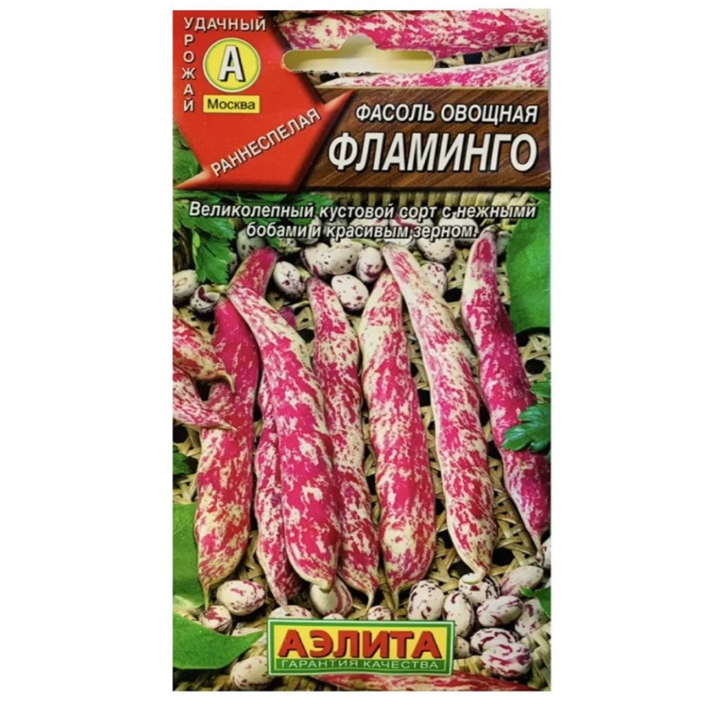 Фасоль овощная Фламинго, раннеспелый красивый сорт фасоли. От всходов до потребительской годности проходит 50-65 дней. Растения кустовые, высотой до 50 см. При хорошем уходе каждый куст формирует за сезон до 50-60 бобов длиной 15-18 см. В кулинарии используют молодые стручки, а в дальнейшем по мере созревания широко применяют спелое зерно. Вкусовые качества продукции отличные. Сорт подходит для замораживания и консервирования. Устойчив к неблагоприятным погодным условиям.