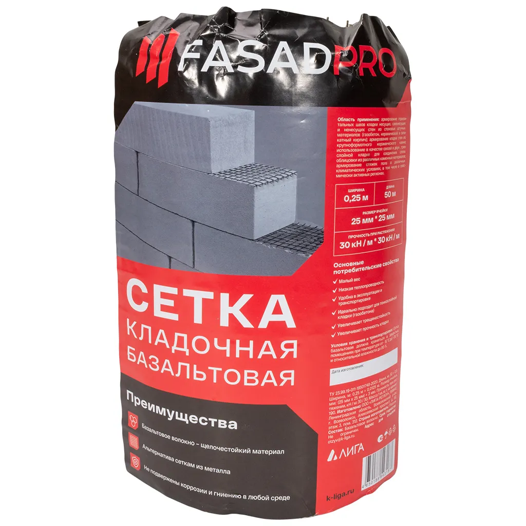 Базальтовая кладочная сетка FasadPro, 25х25мм, 0.25х50м
