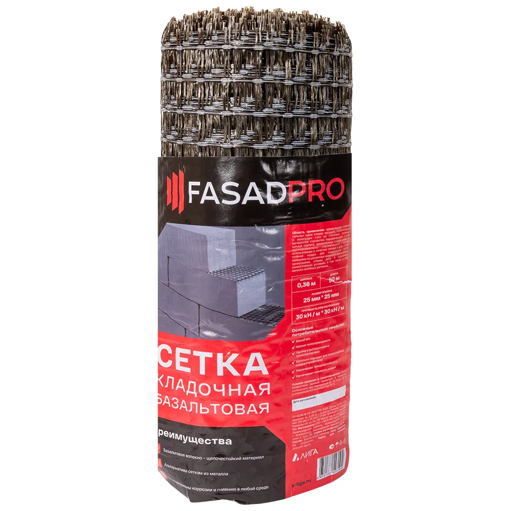 Базальтовая кладочная сетка FasadPro, 25х25мм, 0.36х50м