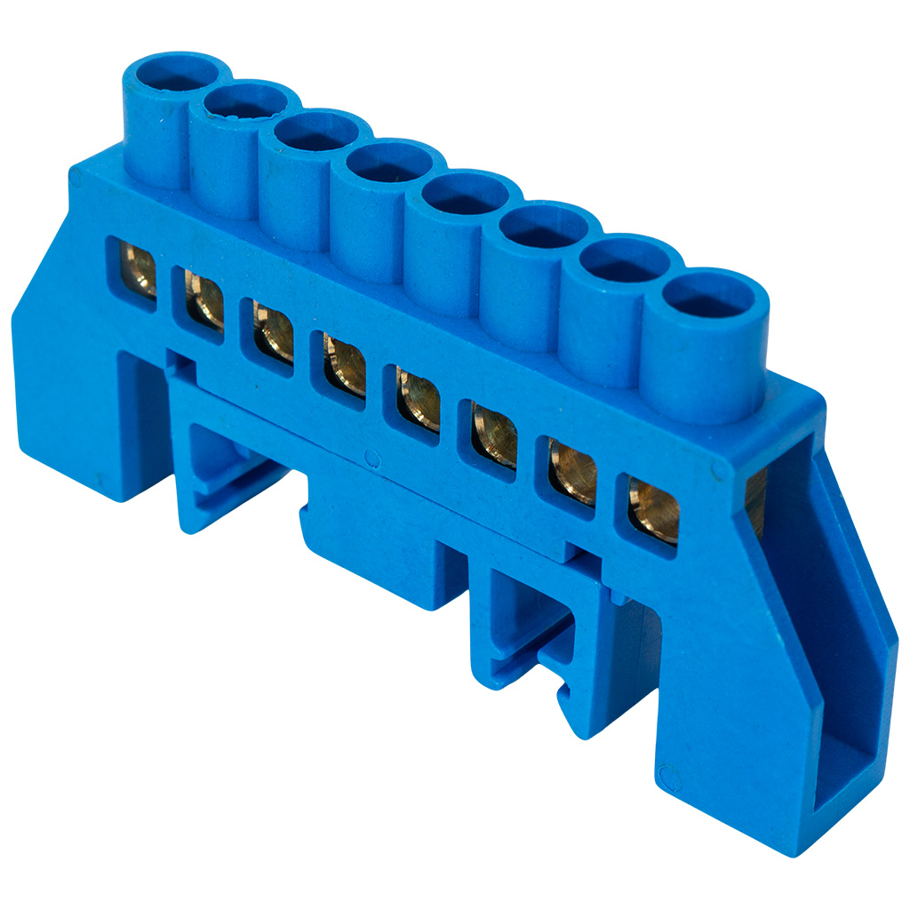 Шина нулевая EKF, N (6х9мм) 8 отверстий, синий нейлоновый корпус на DIN-рейку
