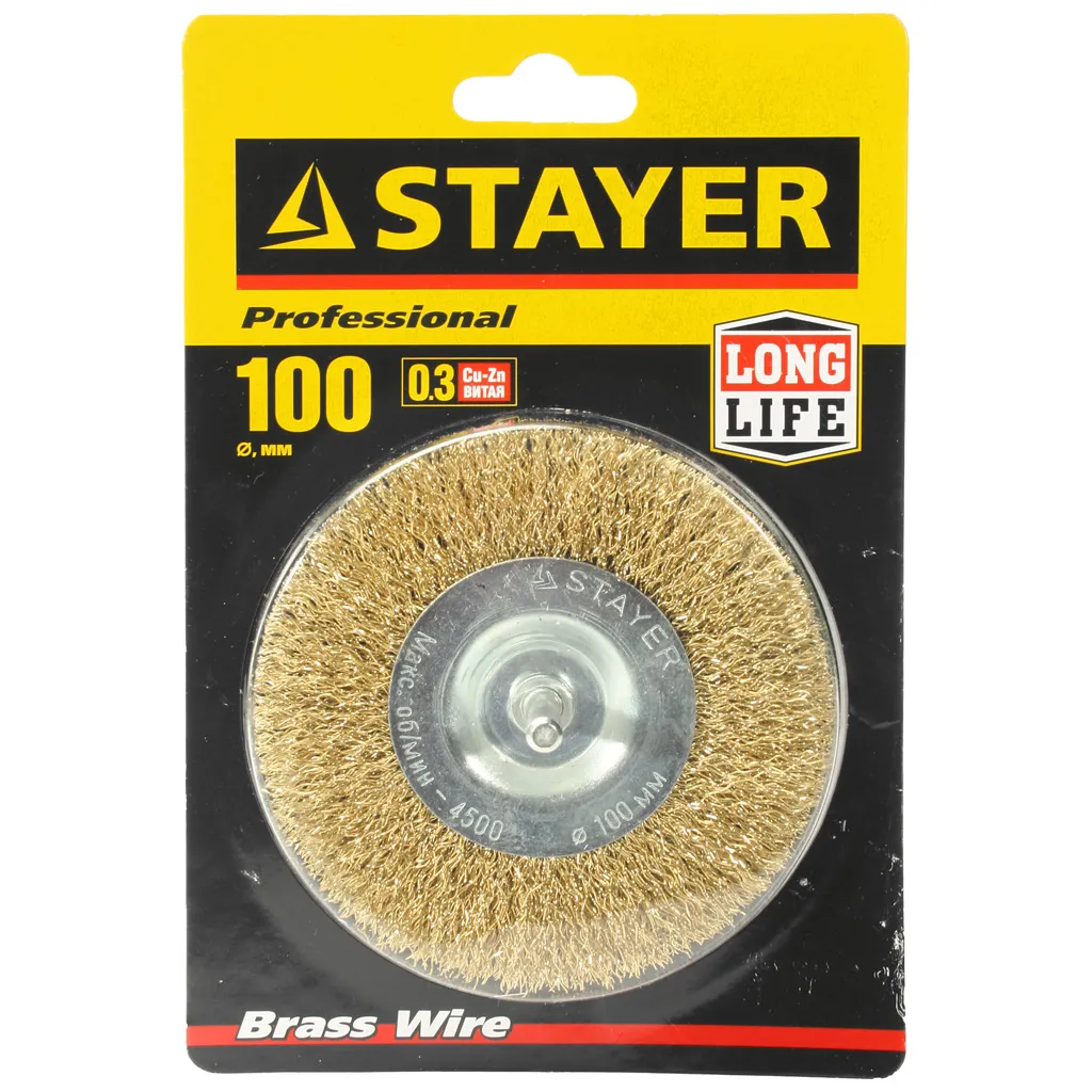 Щетка-крацовка дисковая Stayer Profi, для дрели, применяются для удаления краски, ржавчины, заусенцев, нагара, окалины с поверхности изделий из стали и цветных металлов.