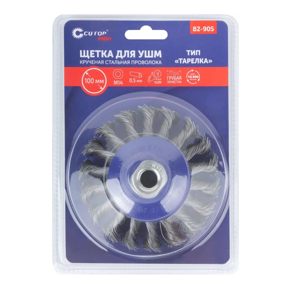 Щетка оснащена качественной проволокой, которая обеспечивает надёжное сцепление с обрабатываемой поверхностью и позволяет быстро и качественно выполнять работу. Тип «Тарелка» оптимально подходит для обработки углов, пазов, изгибов и других труднодоступных участков. Грубая зачистка, стальная проволока 0,5 мм.