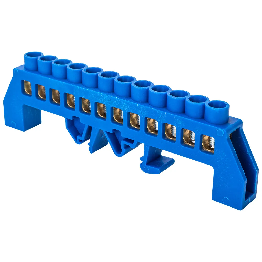 Шина нулевая EKF, N (8х12мм) 12 отверстий, синий изолятор на DIN-рейку.