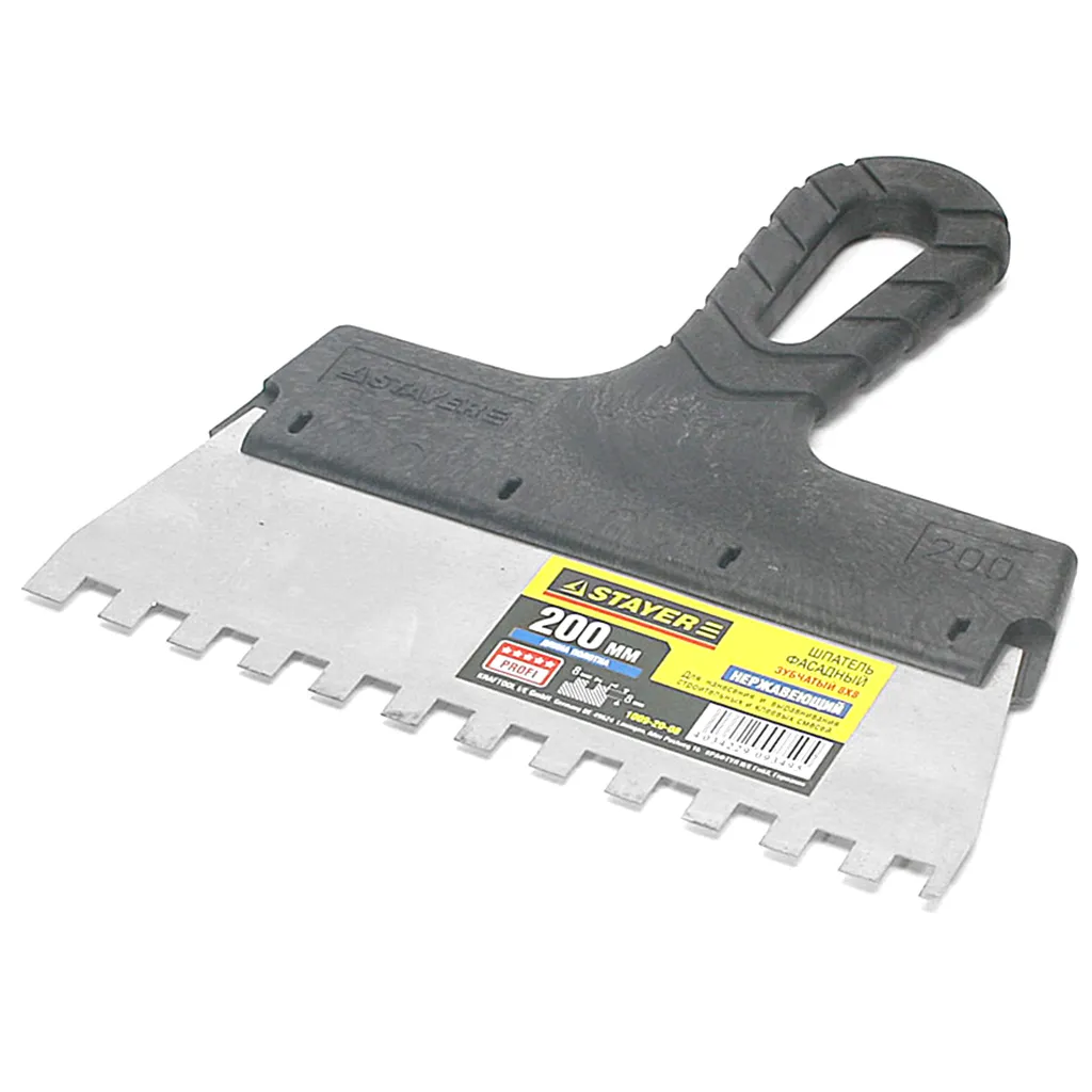 Шпатель фасадный Stayer Profi, 200мм, с зубцами 10мм х 10мм, нержавеющее полотно