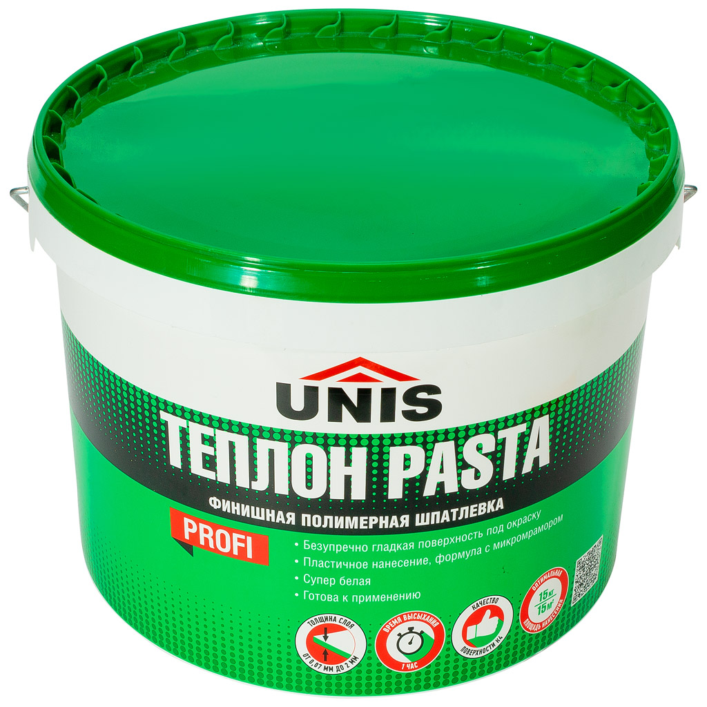Шпатлевка Unis Теплон Паста подходит для стен под покраску и декоративную отделку. Высокая пластичность облегчает нанесение, быстро сохнет и гарантирует повышенную белизну финишного слоя. Универсальная готовая шпатлевка идеально выравнивает гипсовую, бетонную, цементную и штукатурные базы. Может наноситься валиком или малярным правилом над маяками. Полимерный состав обеспечивает водостойкие свойства, что позволяет применять материал в местах с высокой влажностью.