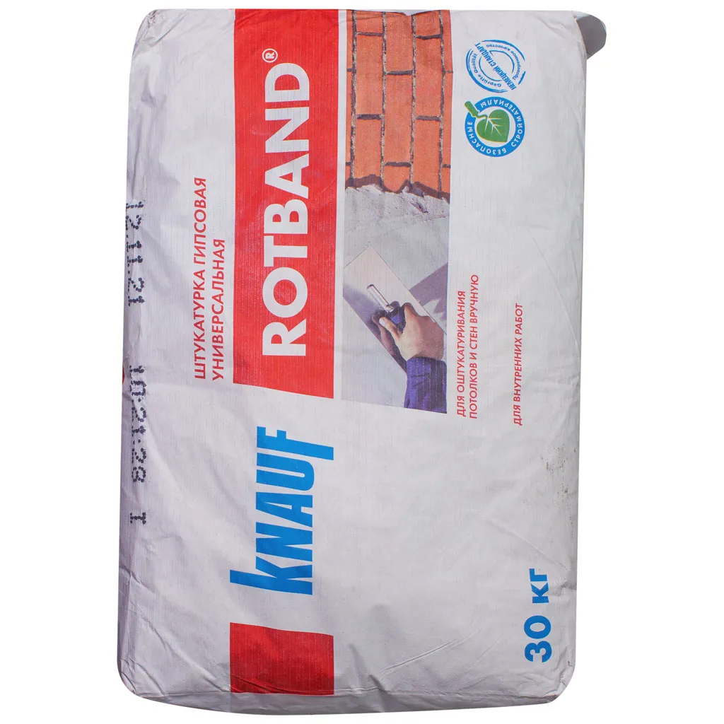 Штукатурка гипсовая KNAUF Ротбанд предназначена для оштукатуривания потолков и стен с различной поверхностью в один слой внутри помещений. Обеспечивает гладкую поверхность, которая не нуждается в допо...