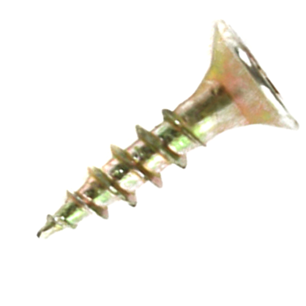 Универсальный шуруп с потайной головкой и жёлтым цинковым покрытием, которое обеспечивает повышенную стойкость к коррозии.