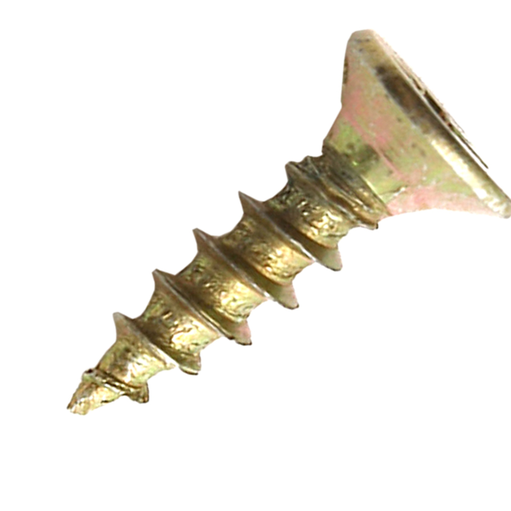Универсальный шуруп с потайной головкой и жёлтым цинковым покрытием, которое обеспечивает повышенную стойкость к коррозии.