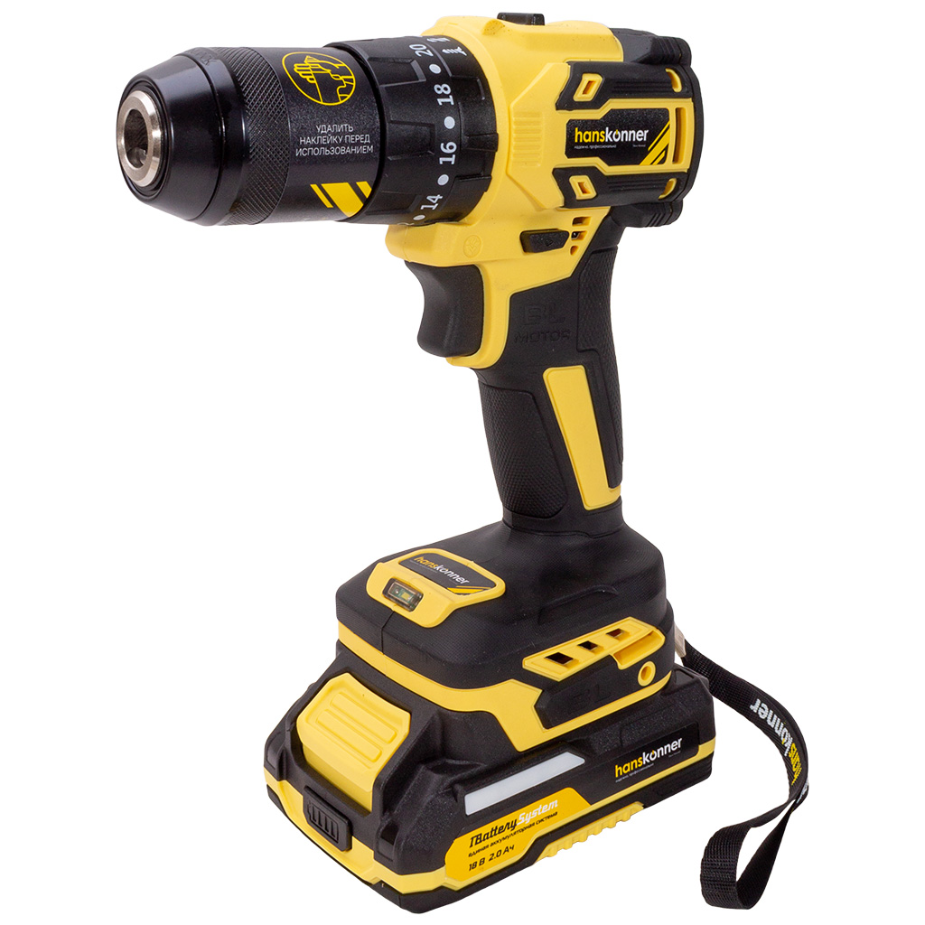 Дрель-шуруповерт Hanskonner аккумуляторная HCD2065BLIC, 1BatterySystem, 18В