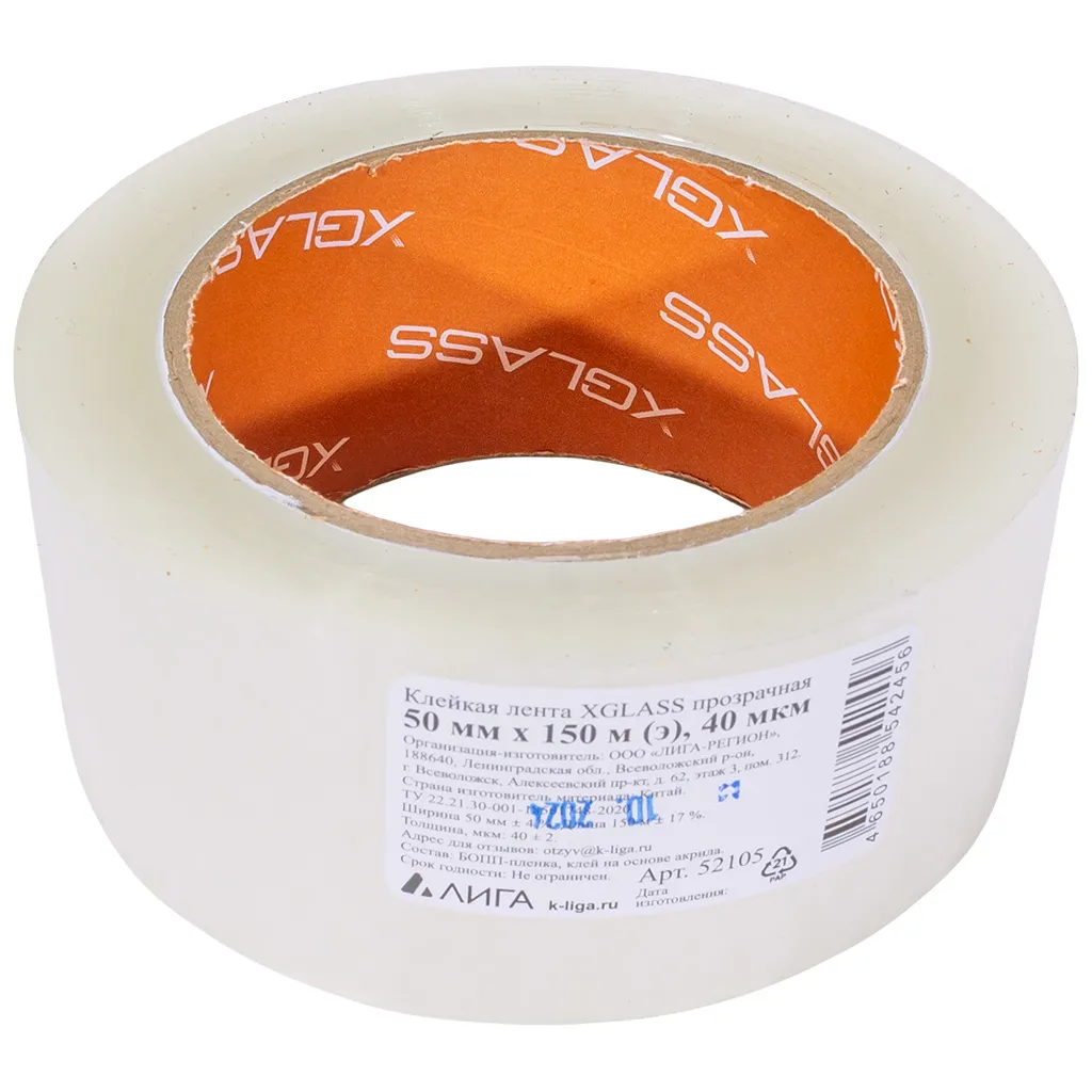 Скотч Xglass. прозрачный, 50мм х150м, 40мкм