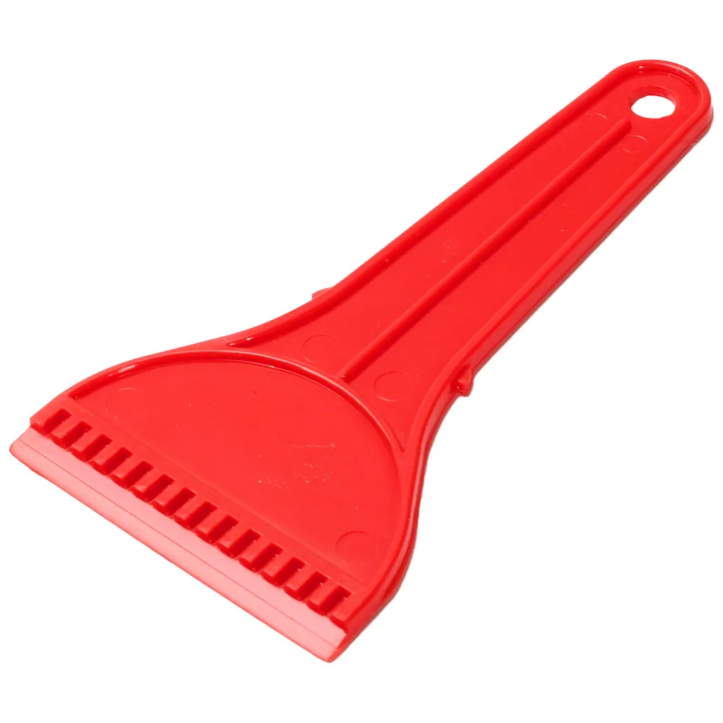 Компактный скребок, красного цвета для удаления льда с кузова автомобиля.